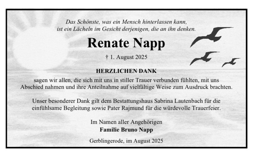 wir wünschen Ihnen für die kommende Zeit viel Kraft und dass es Ihnen gelingt, dankbar auf die positiven Erinnerungen zurückzublicken. Diese Gedenkseite möge Ihnen dabei helfen, Ihre Trauer zu teilen und das Andenken gemeinsam wachzuhalten.